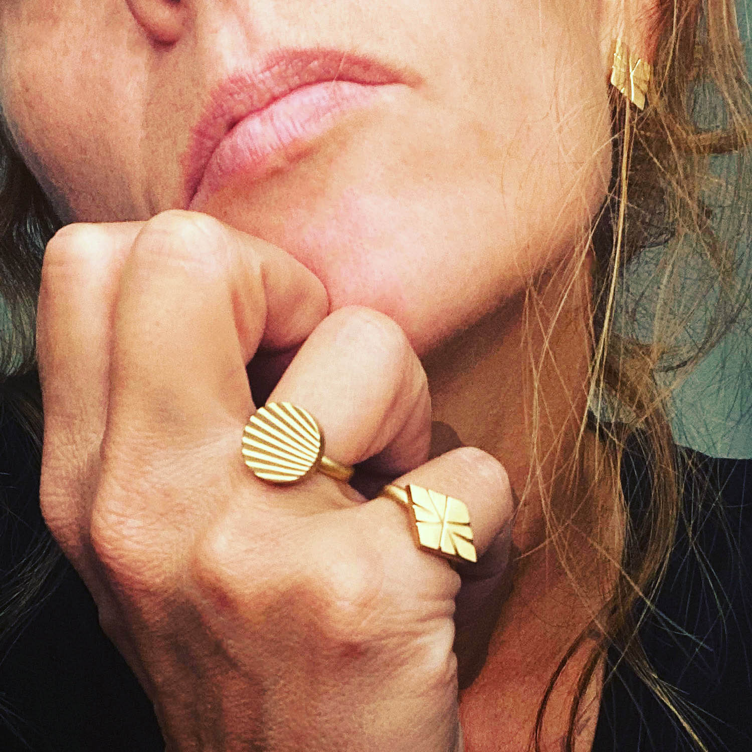 La colección ha sido creada artesanalmente a partir de la técnica del moldeado a la cera, esculpiendo a mano cada una de las perfectas y delicadas figuras geométricas. Esta técnica, moldeado a la cera perdida, utilizada ya en la antigüedad, continúa siendo utilizada en la joyería artesanal contemporánea.