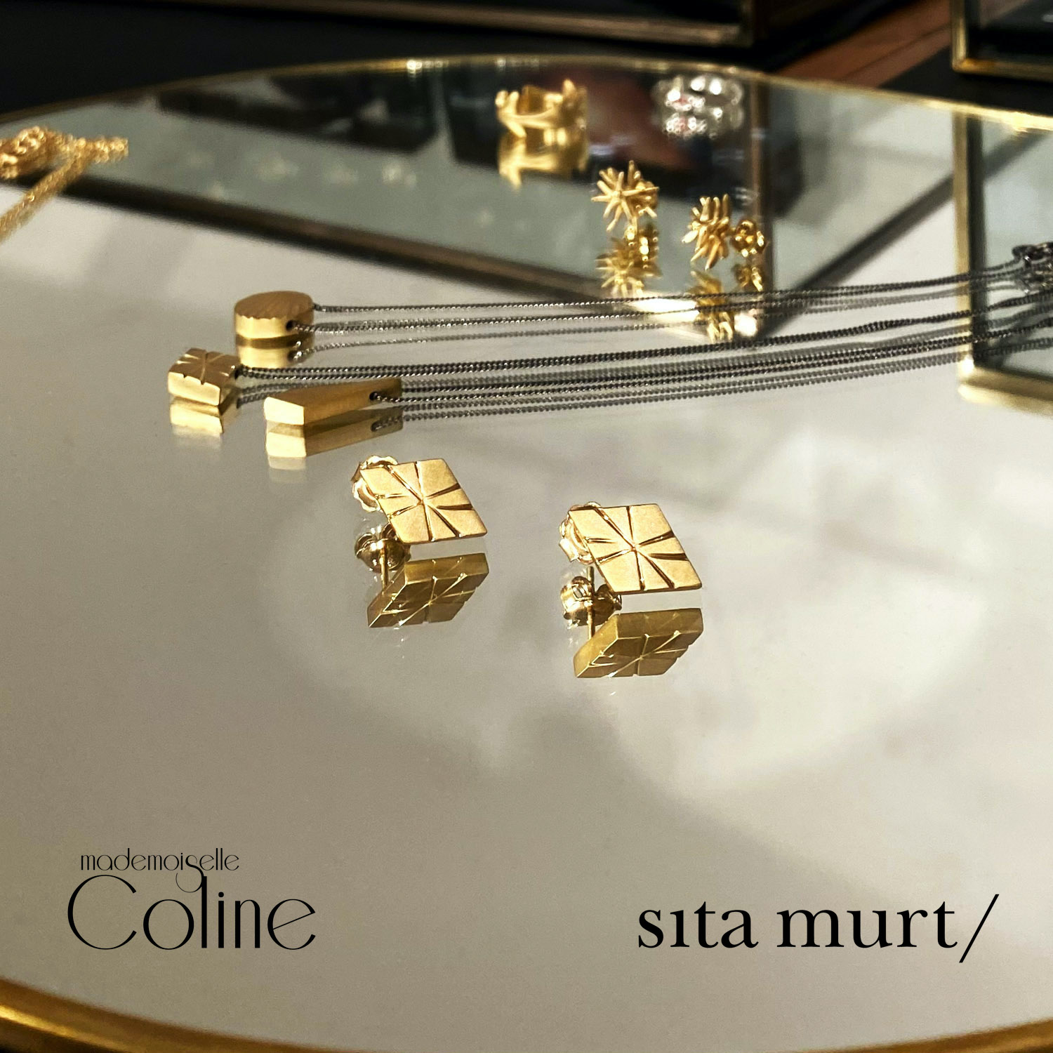 La col·lecció està formada per quatre figures geomètriques a partir de les quals es desenvolupen les dieferntes peces. A les botigues A les botigues Sita Murt trobareu els grans protagonistes de la col·lecció, els penjolls, així com dos models diferents d’arracades.. És una col·lecció creada en Plata 925/1000 reciclada ecològica procedent de la Unió Europea xapada en Or 24k.