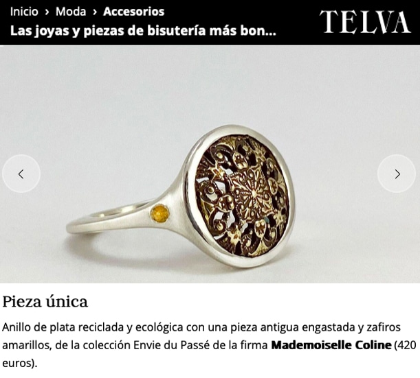 Aquest Anell forma part de la col·lecció de peces úniques de Mademoiselle Coline Envie du Passé inspirada en els anells tipus Segell. La peça principal encastada és un detall rescatat i restaurat de les meves innombrables visites a botigues d’antiguitats i marchés aux puces de París.