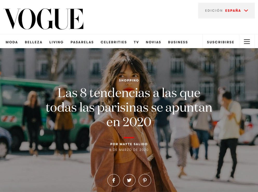 Mademoiselle Coline amb la medalla ‘Golden Vague’ a ‘Les 8 tendències a què totes les parisenques s’apunten a 2020’ segons VOGUE.