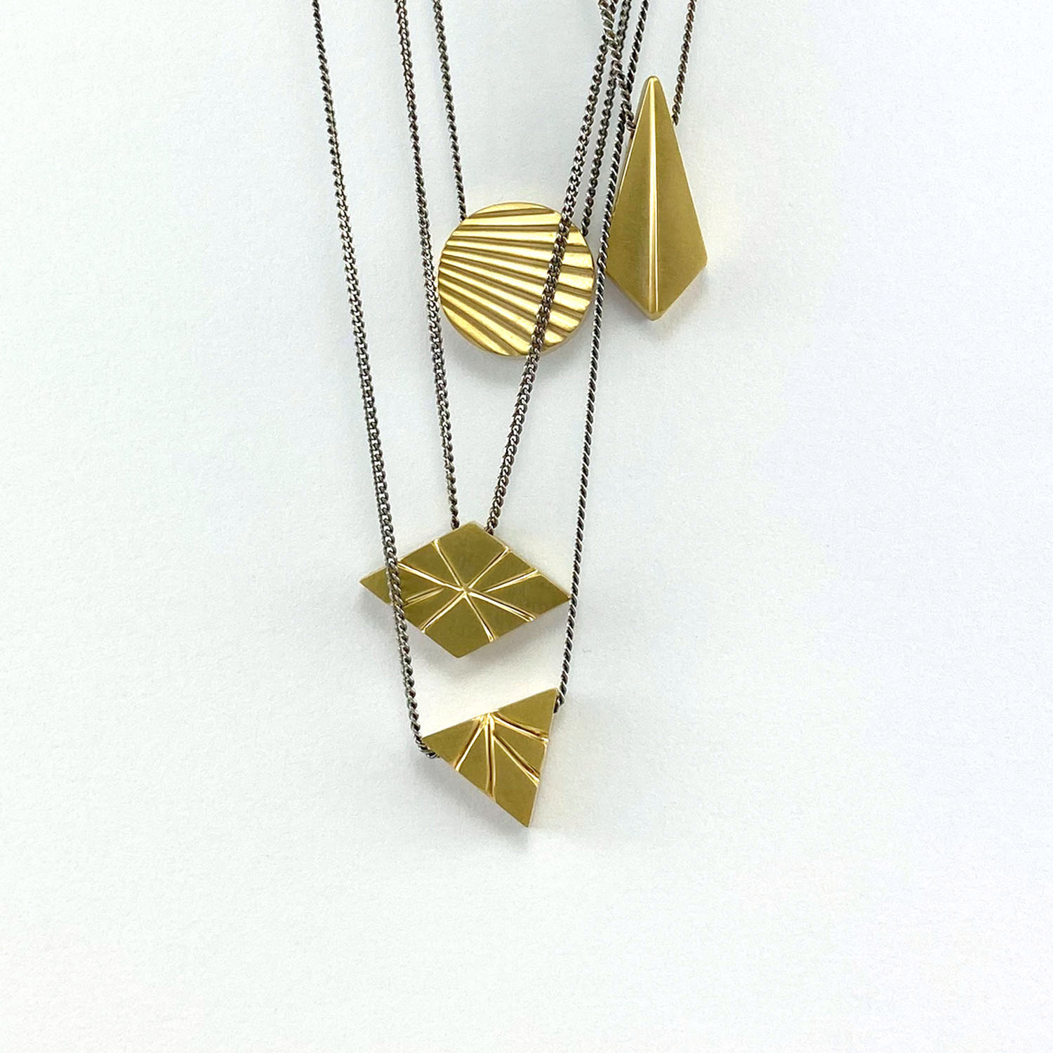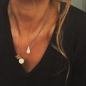 La col·lecció està formada per quatre figures geomètriques a partir de les quals es desenvolupen les dieferntes peces. Els grans protagonistes són els penjolls, format una col·lecció de 4 models diferents a triar, així mateix, 4 llargades diferents a ser personalitzades. Així mateix hi ha 4 models diferents d’arracades i dos d’anells. És una col·lecció que es crea en Plata 925/1000 reciclada ecològica procedent de la Unió Europea xapada en Or 24k.