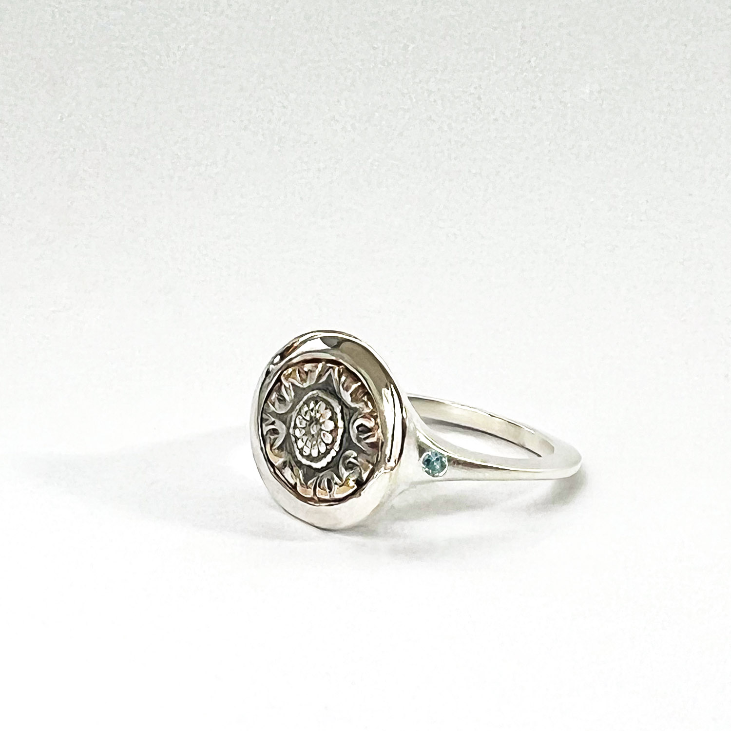 Es pot escollir la muntura de l’anell, el detall antic, el metall i, si es desitja, també pedres engastades. Un cop definits aquests elements, la peça es realitza artesanalment A Mida.