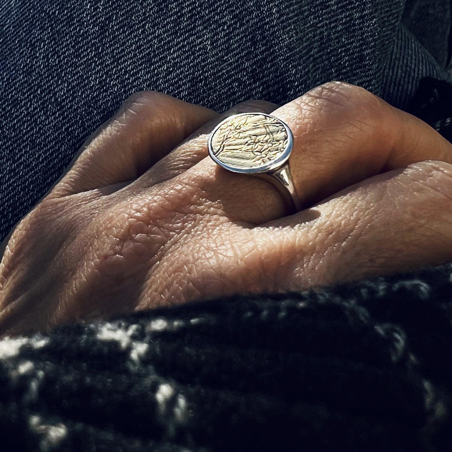 Cada peça de joieria es crea artesanalment a mà amb metalls recuperats, restaurats i reciclats de manera ecològica, procedents de la Unió Europea.