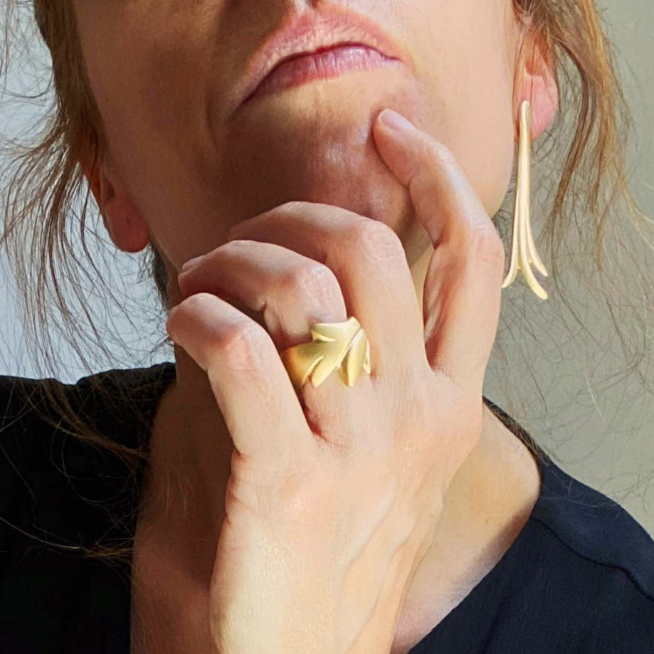 Arracades de la Col·lecció Après un Rêve inspirats en les cintes de la Clivia. Una planta amb aire nostàlgic, sempre present en tot jardí d’estil clàssic. Arracades esculpites en cera a mà perseguint expressar la seva presència i elegància esvelta