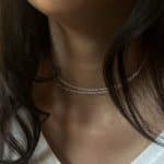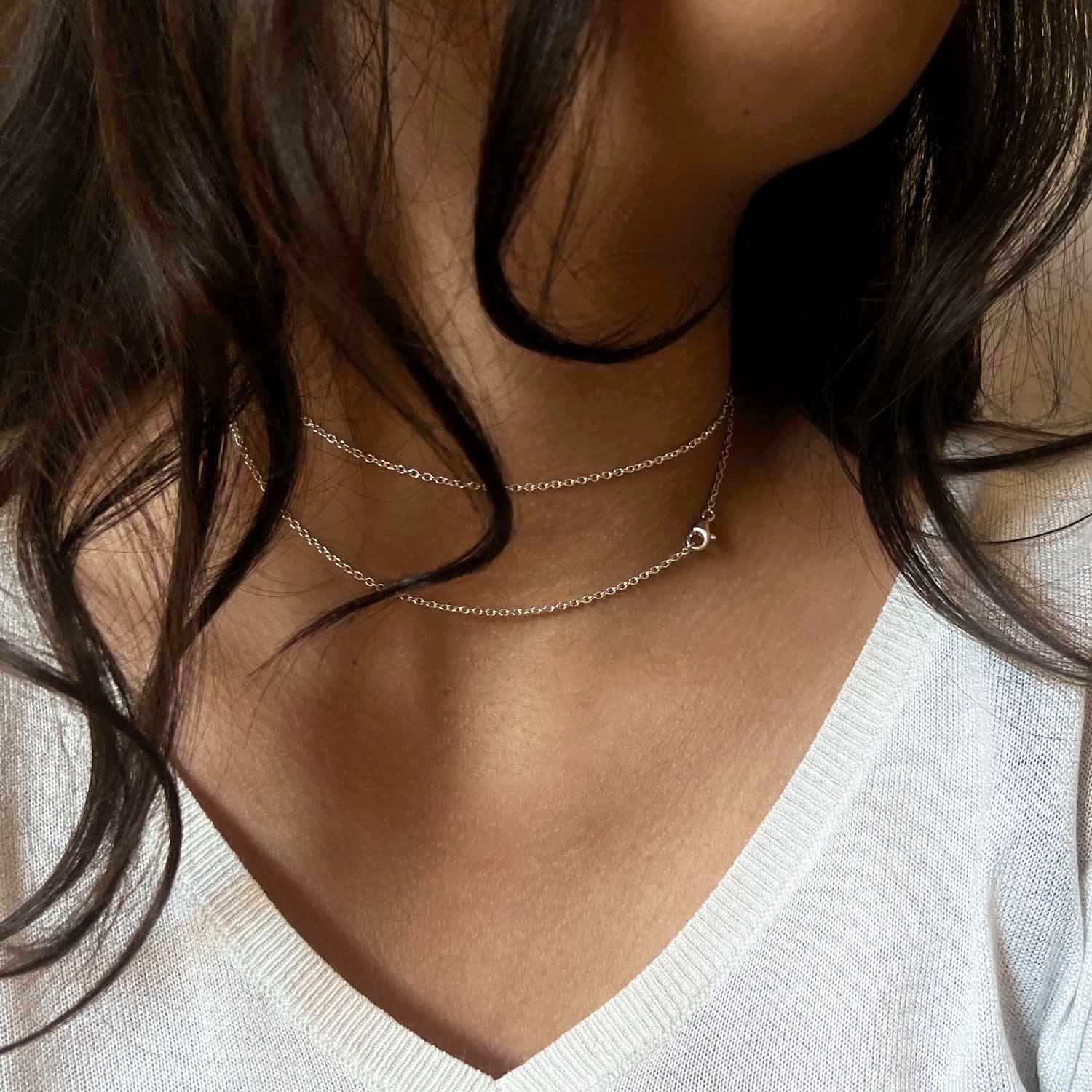Creació delicada i versàtil. Cada cadena presenta un disseny singular i una expressió pròpia. Pensada per portar-se sola o com a suport per a penjolls, permet múltiples combinacions: enfilar-hi penjolls, fixar-los mitjançant la tanca o crear composicions personalitzades.