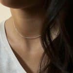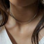 Creació delicada i versàtil. Cada cadena presenta un disseny singular i una expressió pròpia. Pensada per portar-se sola o com a suport per a penjolls, permet múltiples combinacions: enfilar-hi penjolls, fixar-los mitjançant la tanca o crear composicions personalitzades.