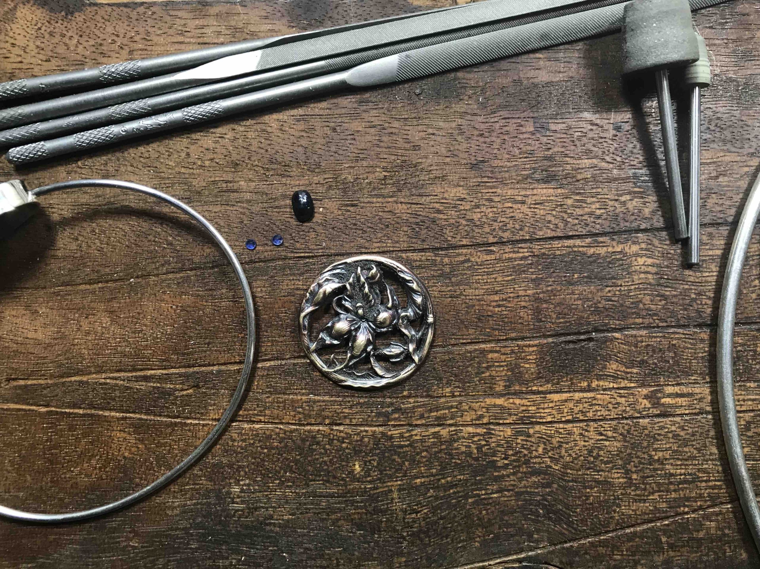 Dans l’image, mon dernier trésor, une pièce Art Nouveau achetée au marché aux puces de Saint-Paul à Paris.