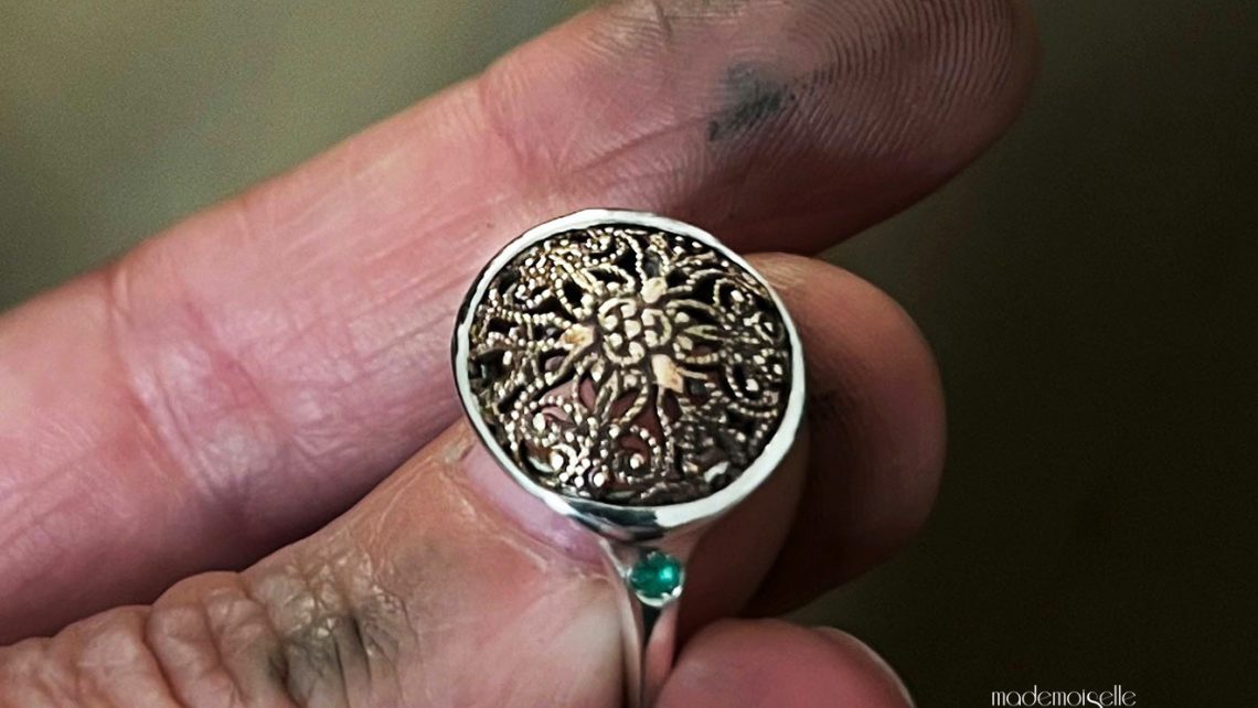 C’est la première bague que j’ai créée pour la Collection Envie du Passé. Sa pièce ancienne est qui m’a inspiré pour faire ce groupe de pièces. Souvent, je trouve très