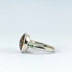 Pièce unique de la Collection Envie du Passé qui nous raconte des temps pleins de lumière. Le détail central de la pièce, serti, est un élément ancien récupéré et restauré. Un élément ancien, riche en détails, qui, couronné de trois émeraudes de chaque côté, révèle une pièce chaleureuse d’une grande distinction.