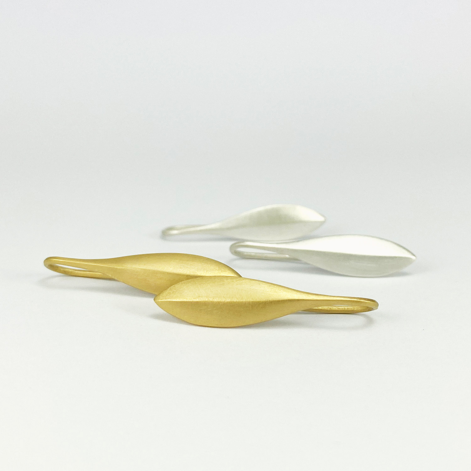 Boucles d’oreilles de la Collection Après un Rêve inspirées de l’une des feuilles les plus présentes et abondantes de tout jardin de style classique. La feuille est formée directement à partir de sa tige avec une coupe simple, élégante et minimaliste