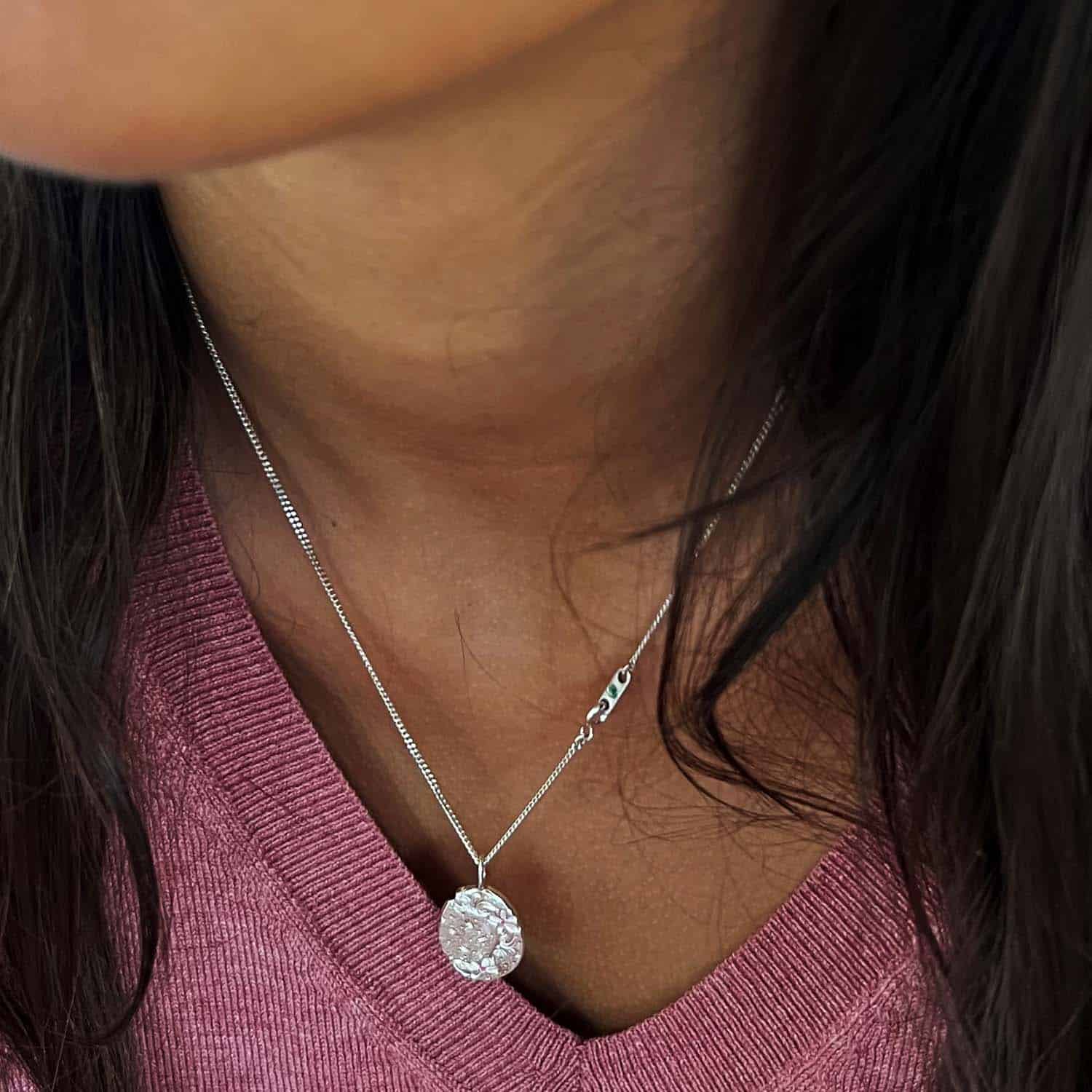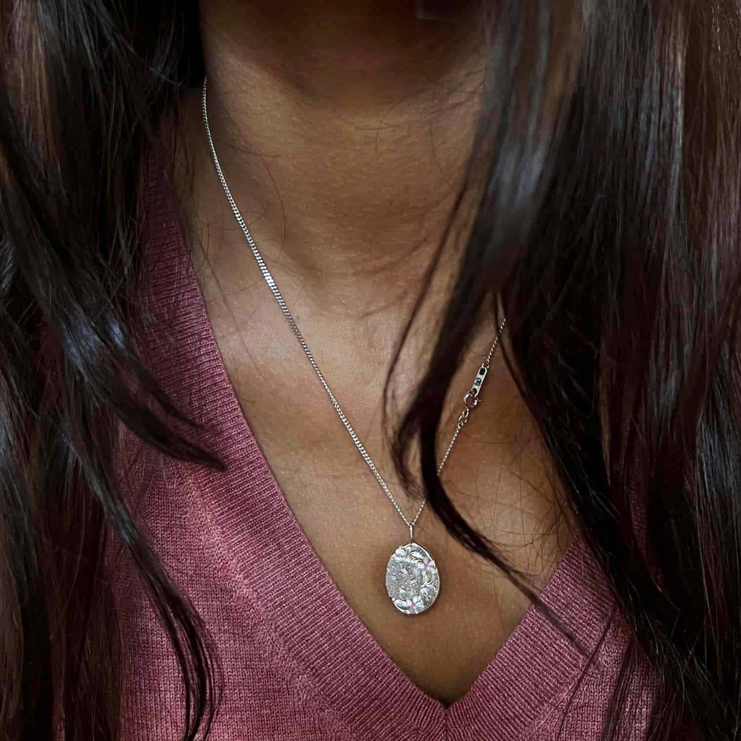 Le pendentif est disponible seul ou accompagné d’une chaîne…