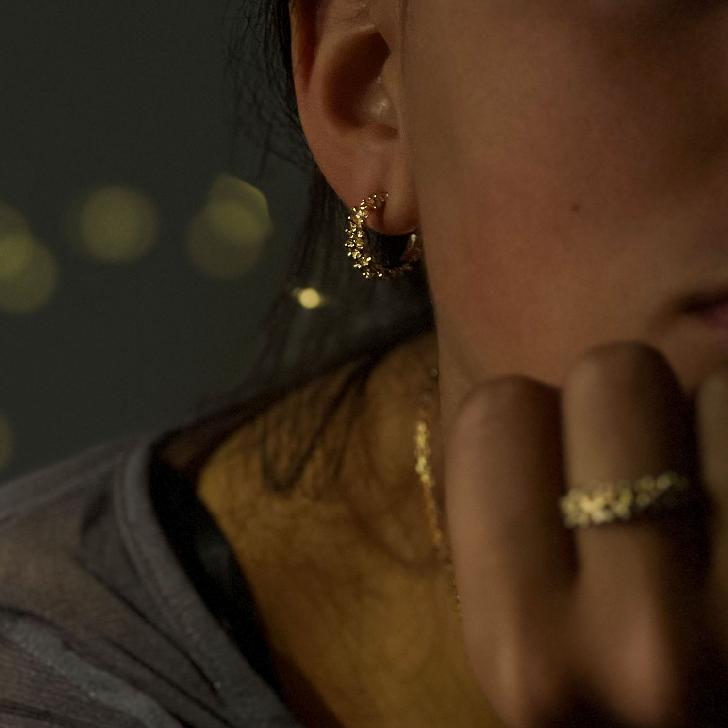 Pendientes hechos artesanalmente de la Colección Interlude. Una colección que nos invita a detenernos y sumergirnos en la contemplación. Estos pendientes simbolizan esa pausa, en la que el tiempo se descompone en infinitas partículas brillantes que centellean incesantemente.